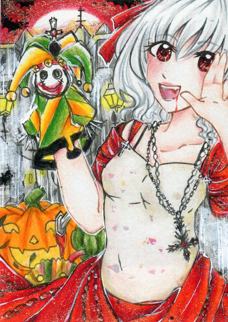 She lives in an old, small church with glass stained red windows, telling everyone it was passed down to her by the vampire that turned her before he had to go take care of family business. The story she is making up about him is kind of a dramatic love story and not everyone likes to listen to it.